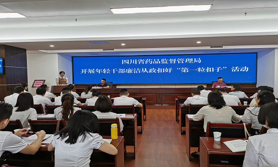 6月29日,在纪念中国共产党成立101周年之际,省局开展年轻干部廉洁从政扣好“第一粒扣子”活动,引导年轻干部对党忠诚,坚定理想信念,牢记初心使命,明规矩、知敬畏、存戒惧、守底线。机关各处室、检查分局、直属单位35岁以下年轻干部共50人参加活动。局党组成员、机关党委书记赵勇主持活动。 “我志愿加入中国共产党……随时准备为党和人民牺牲一切,永不叛党。”大家面对鲜红的党旗,高举右拳,共同重温入党誓词。铿锵有力的誓言,表达了大家对党的无限忠诚和永远听党话、跟党走的坚定决心。 省纪委监委驻省市场监管局纪检监察组副组长杜是桦以《旗帜鲜明地同腐败作斗争——系好人生廉洁从政第一颗纽扣》为题,为大家讲了一堂生动的专题廉政党课,教育引导年轻干部常怀律己之心,防微杜渐,筑牢拒腐防变思想防线。活动现场,年轻干部代表作了表态发言,大家共同观看了廉政警示教育片。 大家纷纷表示,将进一步深入学习席大大总书记关于全面从严治党的重要论述,坚定理想信念,严格要求自己、锤炼自己,踏实工作、锐意进取,持续扣好人生“每一粒扣子”,为推动我省药监事业和医药产业高质量发展贡献青春力量。