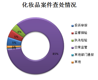 第四部分化妆品监督管理一、化妆品生产企业日常监督情况2018年一季度,全省共检查化妆品生产企业281家,检查化妆品生产企业438家次,出动检查人员4961人次,检查化妆品品种2947种次,抽验化妆品81批次,检出不合格化妆品批次2批次,发现生产记录缺失、不完整16家,完成整改的企业77家。详见附表9。 二、化妆品案件查处情况2018年一季度,全省各级食品药品监管机构共查处化妆品案件221件,其中一般程序案件202件,简易程序案件19件,涉及物品总值10.83万元,罚款24.85万元,没收违法所得金额3.87万元,责令停产停业7户,无移送司法机关案件,无刑事判决案件,行政处罚案件信息公开122件,符合公开条件的行政处罚案件122件。 从案件来源看,投诉举报11件,抽检监测10件,执法检验9件,日常监管和专项检查187件,其他部门通报1件,其他3件。 从违法主体看,生产企业违法主体4件,经营企业违法152件,美容美发机构违法52件,其他违法13件。