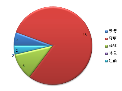 AG真人娱乐娱乐生产许可证本期新增3件,变更43件,延续6件,补发0件,注销2件,期末实有237件。 图5-2-12018年上半年全省AG真人娱乐娱乐生产企业许可证情况