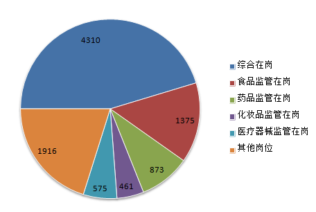 二、人员情况(一)行政机构人员情况2018年上半年,全省各级食品药品监管行政机构共有编制29226人,实际到岗26382人。 从所在部门看,综合在岗人员4310人,食品监管在岗人员1375人,药品监管在岗人员873人,化妆品监管在岗人员461人,AG真人娱乐娱乐监管在岗人员575人,其他岗位人员1916人。 图1-1-22018年上半年行政机构到岗人员所在部门分布图